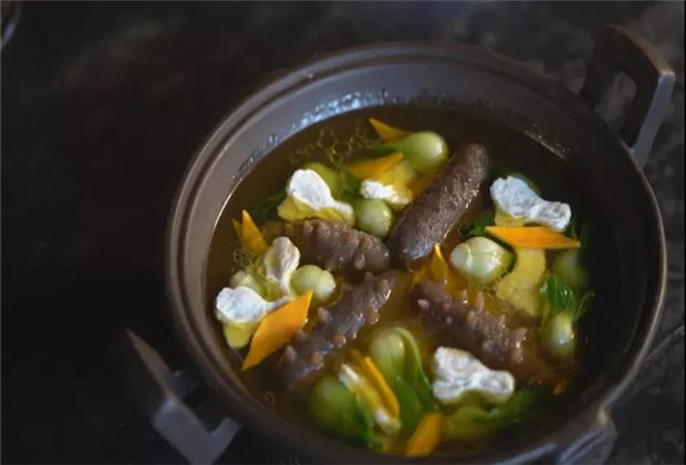 為了匹配馬幫山遙路遠從海外馱來的名貴的食材——海參,和順人往往會精心熬制一鍋無比鮮美的高湯。