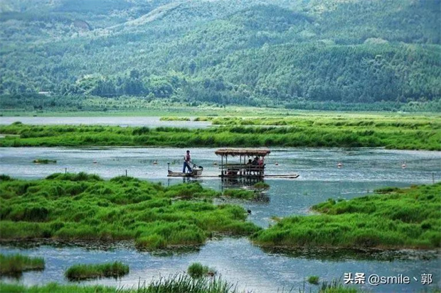北海沼澤群山環(huán)抱。漂浮在水面上的大片大地,猶如鋪著巨大的彩色地毯,華麗而神奇。每年4月中旬至5月蘭花盛開時節(jié),是游覽此地的最佳時節(jié)。夏季泛舟湖上,猶如置身“水上草原”。