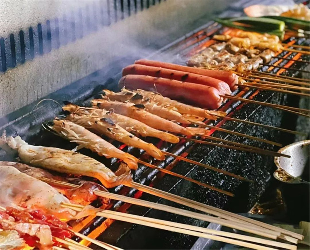 一串串滴著油的烤肉在炭爐上被一雙老練的手翻烤刷醬,食客挑選好入座,有說有笑,一邊喝酒一邊聊天,似乎只有這樣才能忘卻工作一天的辛勞。