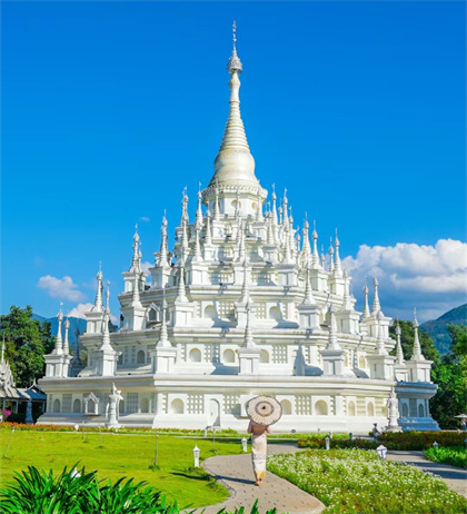 勐煥大金塔、銀塔位于云南省德宏傣族景頗族自治州芒市東南部孔雀湖畔的雷牙讓山頂,勐煥大金塔和銀塔是芒市不可錯過的云南旅游景點。游客在游覽過程中可以充分感受其獨特的建筑風格和深厚的文化底蘊,屬于南亞傣王宮的建筑風格,有著深厚的民族文化內涵。大金塔金光閃閃、氣勢恢宏,是拍照留念的好地方,是傣族人民的圣地,也是生活在這里的各民族信仰佛教的文化象征,傳說釋迦牟尼生前轉世為金雞阿巒時曾生活于此,增添了神秘色彩。勐煥銀塔以銀白色為基調,整體建筑風格與傣族傳統文化緊密結合,充滿了異域風情。可以在塔下拍照,感受獨特的傣族風情,勐煥大金塔是一個集建筑、歷史、文化于一體的旅游勝地,無論是對于喜歡建筑美學的游客還是對于熱愛歷史文化的游客來說,都是不可錯過的景點。