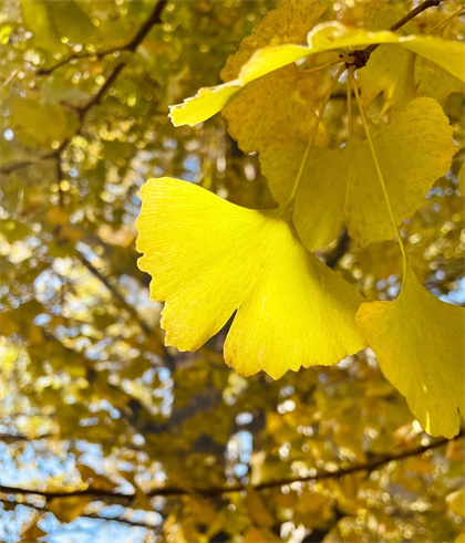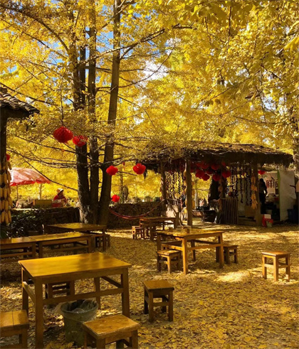 搬個桌椅坐在銀杏樹下喝口茶,說不定一陣秋風吹過,金黃色的銀杏葉便會洋洋灑灑地飄落在你的身上。