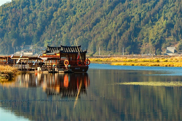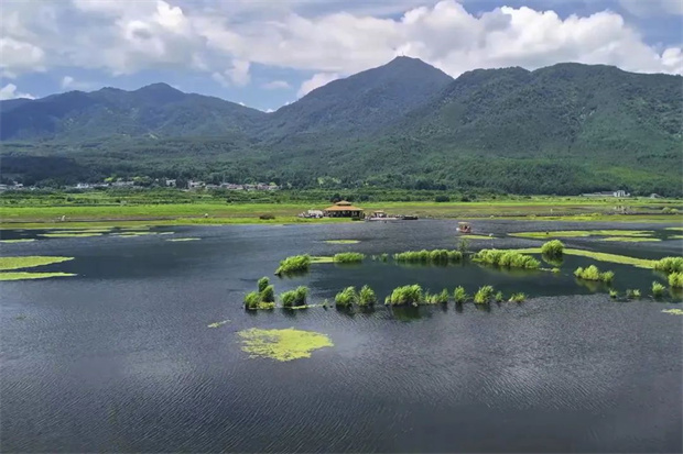 漫步水上棧道:水上棧道視野極佳,沿著棧道漫步,可見濕地四面青山環繞,湖面清水漣漣,不知名的水鳥在草叢中忽隱