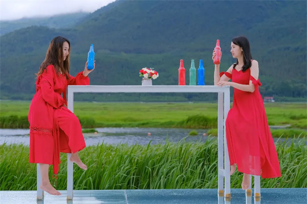襲漂亮的衣服,無論是潔白的長裙、艷麗的紅裙還是具有民族風情的服飾,蕩舟湖面,置身于這如畫卷般的濕地中,打