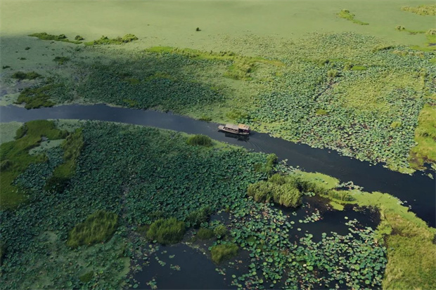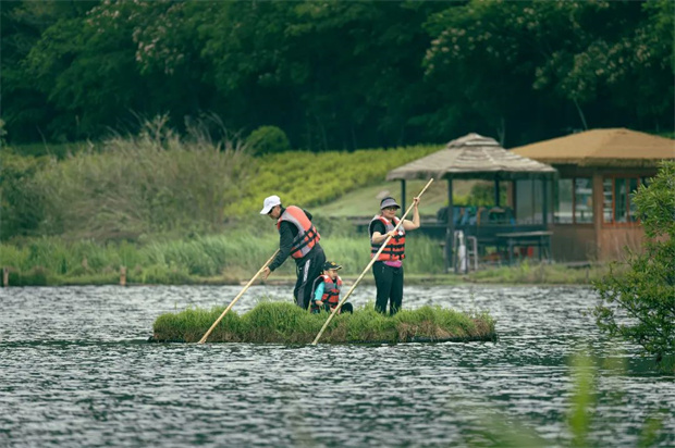 劃草排:踏上濕軟的草排,仿佛能感受到大自然溫柔的觸感。望著腳下悠悠的青草和盈盈的碧水,好似凌步青云草上飛,