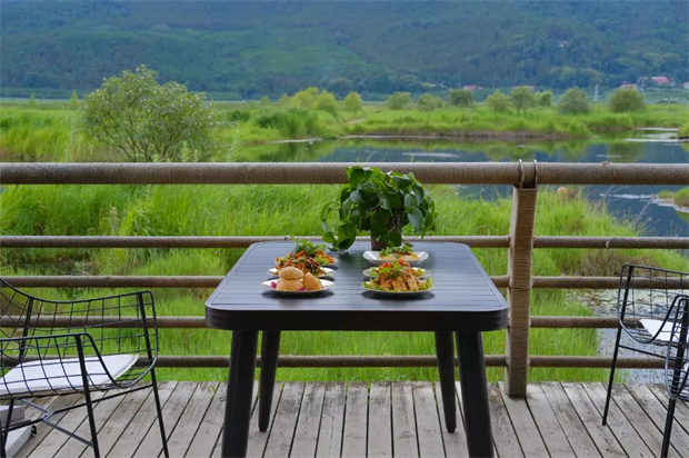 湖心亭休憩:逛累了,就到濕地湖心亭坐一坐,點上一杯濃香的咖啡,或是一杯清香的茶。看著眼前的山湖美景,身體和