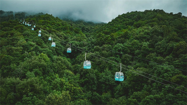 森林,時不時還能邂逅山間跳躍的小松鼠。登頂后,云海翻涌在腳下,漫山遍野的綠意若隱若現,恍若闖入了仙俠劇的