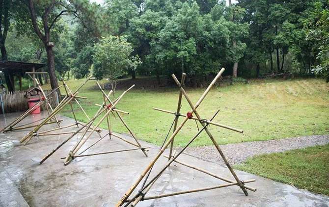 2、搭建炮臺的時候可以戴上手套以防被竹刺傷到手;