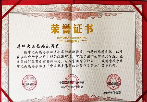 騰沖火山熱海旅游區獲“中國養生休閑旅游最佳目的地”稱號