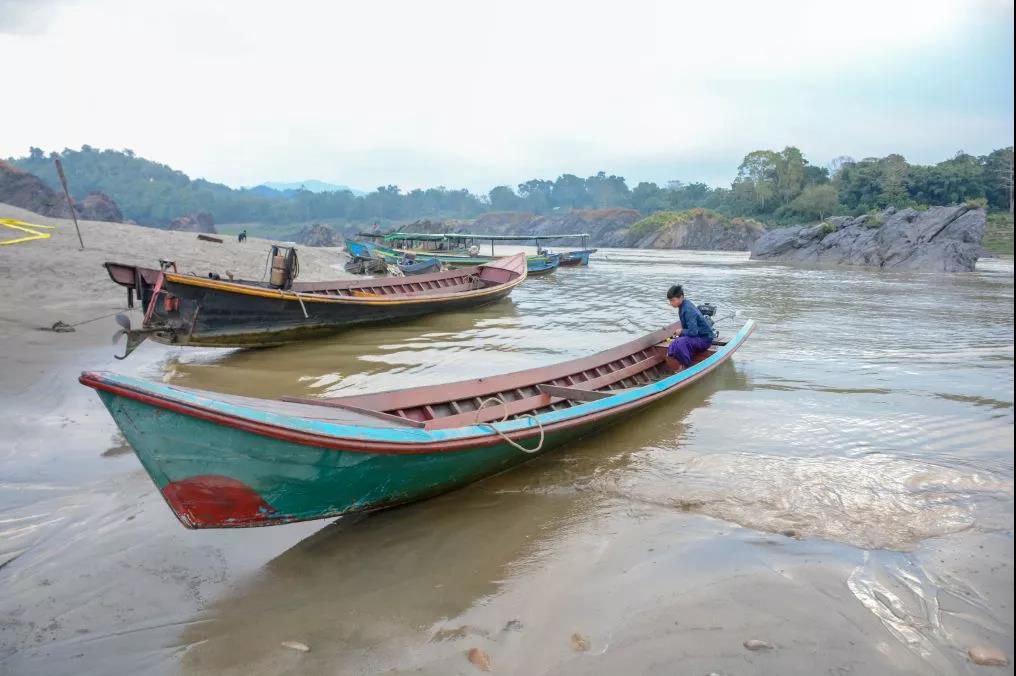 三江口(大敏宋),是伊洛瓦底江的神來之筆,也是克欽邦的經典景點。東邊恩梅開江西邊邁立開江,兩江間礁峭石奇,江水奔涌,在巨大的魚嘴石處交匯合二為一,浩蕩南行。