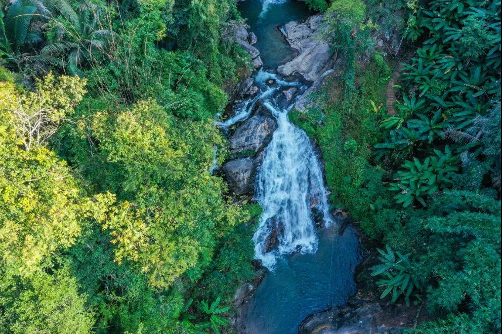 三疊水瀑布(Sadung Waterfall),原始森林里溢出的清流,以溝內層層階梯為舞臺,經過一道道坡崖溝坎,清澈的河流飛馳而下,形成了別有景致的小瀑布。