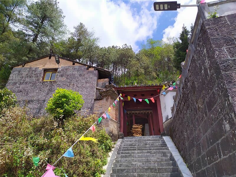 其登山之路碗蜒而上,百步九折,石階以"Z"字形向上迂回前行,登山較為艱辛。然而山中花木奪秀,鳥雀紛鳴,十分居怡人。站在天臺(tái)眺望,騰沖城仿佛一軸平鋪直述的畫卷。