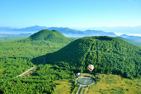 進(jìn)入景區(qū)大門,右手邊有一個(gè)關(guān)于火山的小博物館,可以了解火山的形成和結(jié)構(gòu)。從大門口通向大空山的路很寬,左右兩條,都是用火山石鋪的。在通向大空山的道路向側(cè)邊延伸出一條岔道,那是通往小空山的步道。根據(jù)自己的體力選擇其中一個(gè)或是全都攀爬。兩座山都有小路到達(dá)“鍋底”(火山口),其中小空山的景致要更好一些,如果體力和時(shí)間不允許的情況下,可以選擇爬小空山,兩座山都有階梯直到山頂,小空山火山口四周建了一條木棧道,可以繞火山口走一圈,還可以沿著游人踩出來的小路下到山頂。若是嫌爬山還不夠登高望遠(yuǎn),早上這邊可以選擇乘坐熱氣球,從另一種角度俯瞰密布原野的火山口。