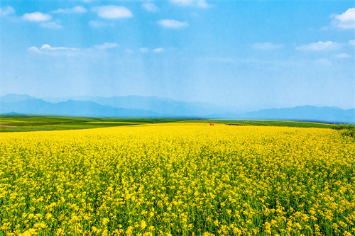 周圍的山、村莊、城市高樓在云霧縹緲時分更顯朦朧,清麗的花搖曳在俗世,也一樣有自己的風格,哪怕花成片綻放,依舊不喧囂,不張揚,只安靜的扎根于這一方世界。
