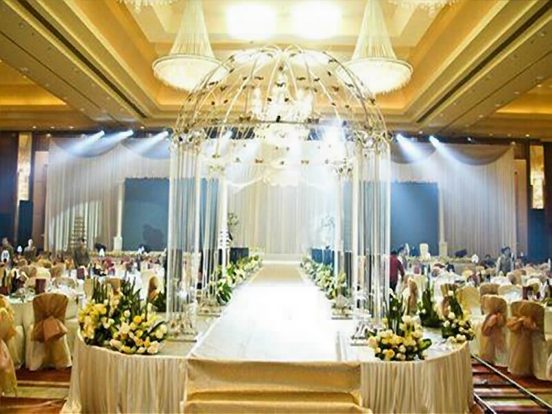 最好能在舞臺的前方加幾臺電腦搖頭,這樣能讓整個會場的燈光照射均勻,不會有某個角落太暗的情況出現。特別是在開場的時候,電腦搖頭跟著新娘新郎的出現一起搖頭,仿佛整個世界的目光都投向了這對新人,效果是特別贊的。