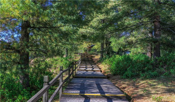 路由夾崖中曲折上升,兩岸高木蟠空,