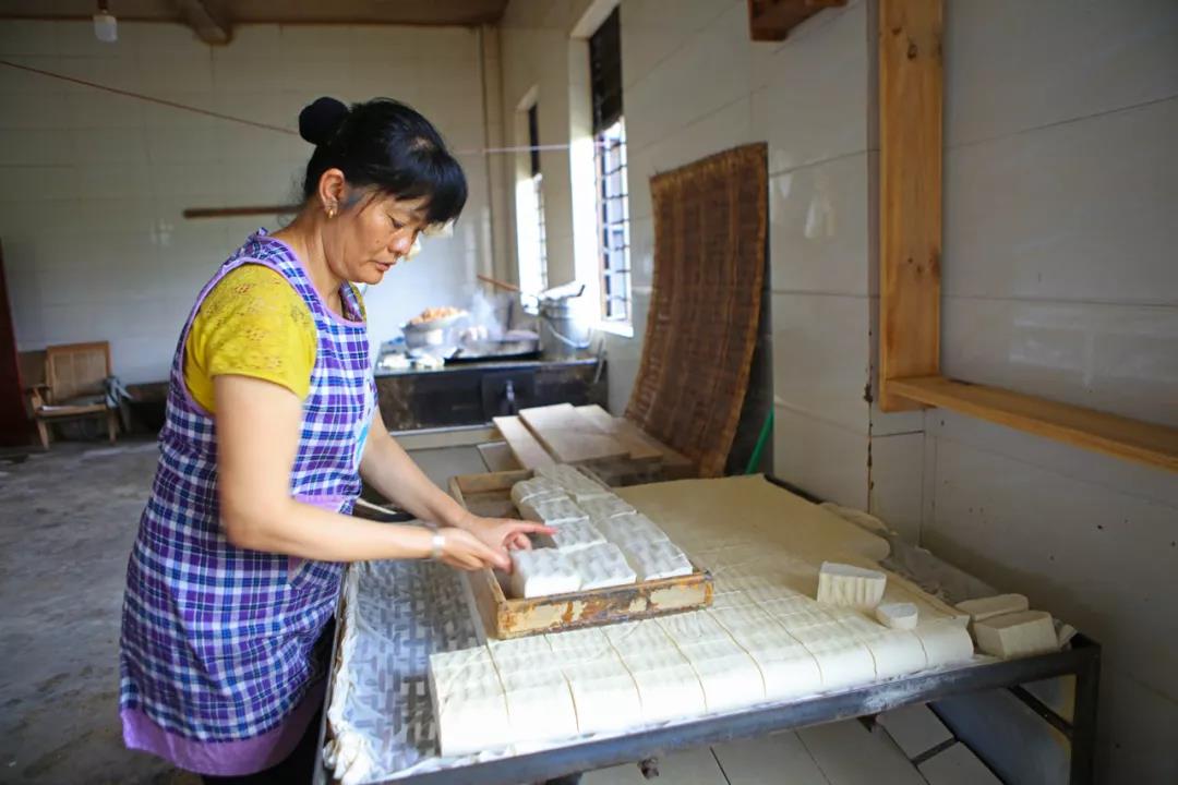 廚房里不時傳來“叮鈴哐啷”的聲音,正是口袋豆腐第十六代傳人高文金在忙著給客人們制作豆腐。得益于本地的優良水質,高文金做出來的豆腐帶有一點點堿性,上到七八十歲的老人,下至七八歲的小孩都很喜歡吃。
