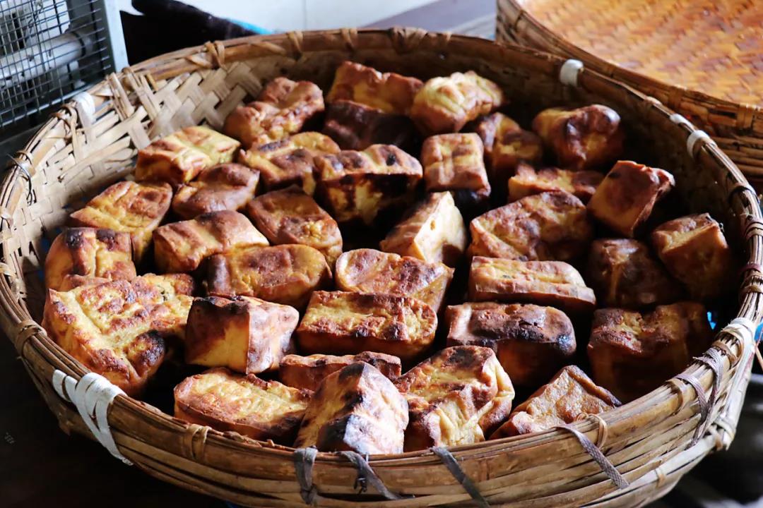 口袋豆腐色澤金黃,外酥內嫩,外面成豆腐袋,里面是豆漿,素淡可口,營養豐富。除金雞以外,其他地方難得一見,堪稱金雞一絕。如今,金雞口袋豆腐被列為保山市市級非物質文化遺產,越來越多的人得以享受這一美食。